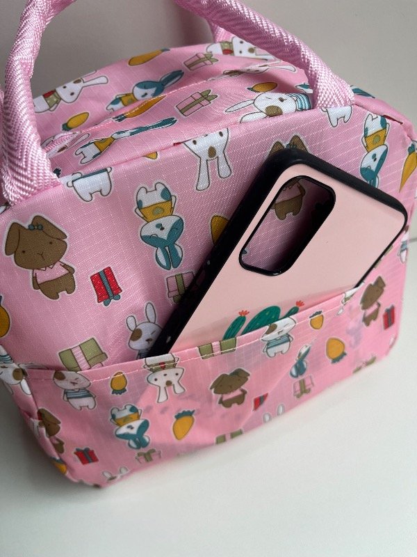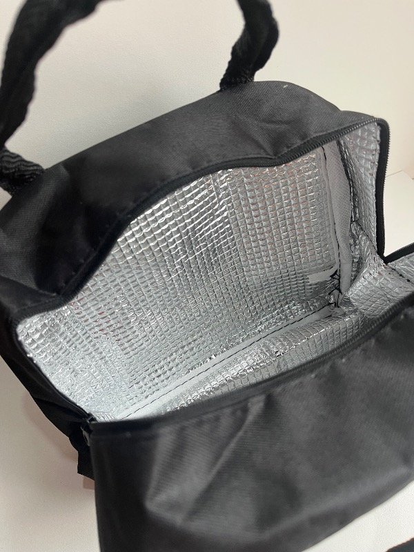 Bolso impermeable con manija, termico por dentro, con 1 cierre y bolsillo delantero.