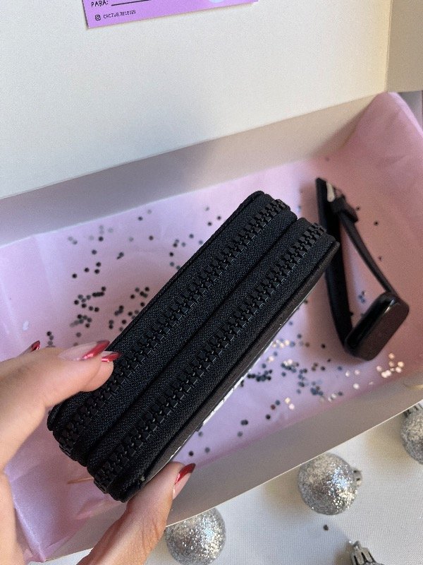 -Billetera doble cierre con manija, varios compartimientos y monedero